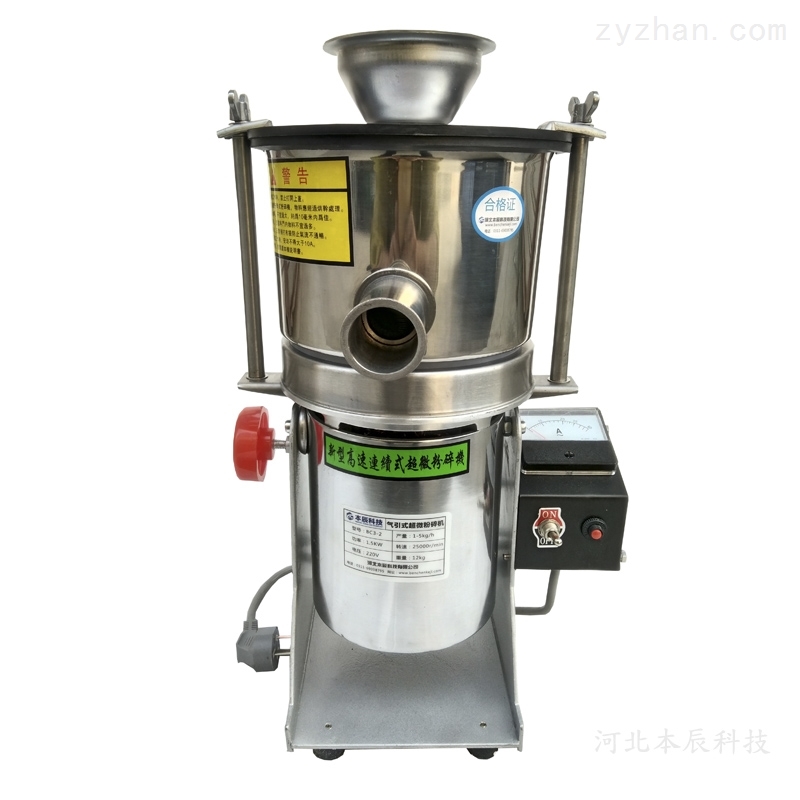 小型中药超细粉碎机BC3-2是我厂依据大陆多年的中国台湾佑崎粉碎机FDV而研发生产的新型超微粉碎机,该机的特点优势是在较小的体积下实现了高速撞击和气流涡流粉碎与旋风式集料方式的融合,该机配备有三种不同形状的刀型可的提高粉碎细度和粉碎效率,并且可根据不同物料选择不同刀型粉碎范围更广。该机采用可调式出料结构,使得其粉碎细度可在一定范围内调节。